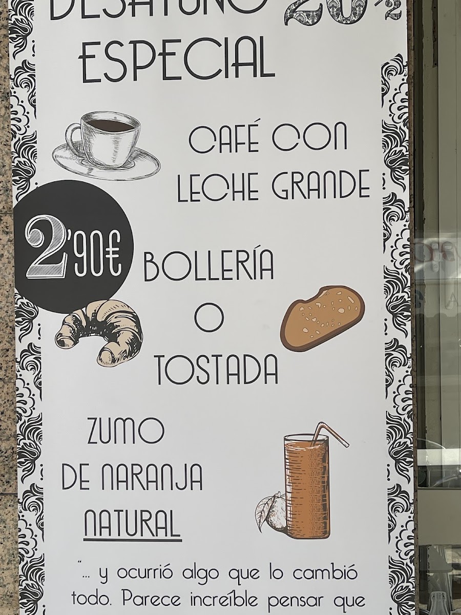 Welcome to Cafetería 20 e 1/2, a quaint gem nestled in the heart of Verín, Ourense, Spain. This delightful café offers an inviting atmosphere that feels like a warm hug as soon as you step inside. With an ideal location on Rúa Viriato, 6 baixo, this spot is perfect for locals and travelers alike looking for a delectable breakfast or a cozy place to unwind over coffee.